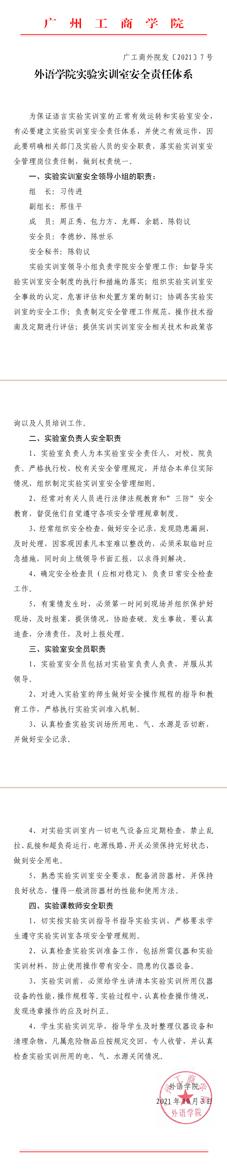 关于成立外语学院党政负责人作为实验室工作安全主要领导责任人的通知