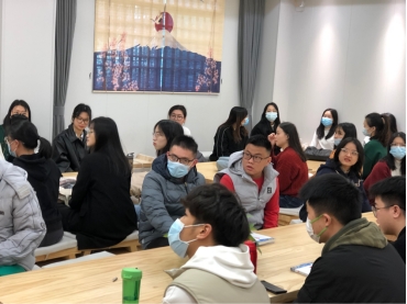 此次日语角仍采用有趣的フリートーク的形式与大家交谈,活动开始之前学院向同学们做了问卷调查,收集他们想与太田老师交流的内容和问题。太田老师幽默风趣,从日常生活的各种方面进行讨论,同学们积极热情地与老师互动,询问老师喜欢吃中国的哪些美食,太田老师生动有趣的回答让大家不时发出欢快的笑声。