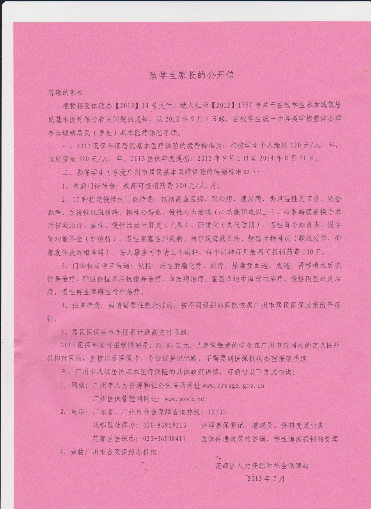 致学生家长的一封信(医保问题)