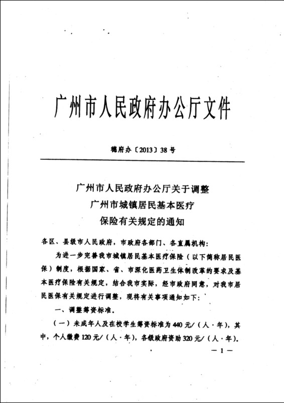广州市人民政府办公厅关于调整广州市城镇居民基本医疗保险有关规定的通知