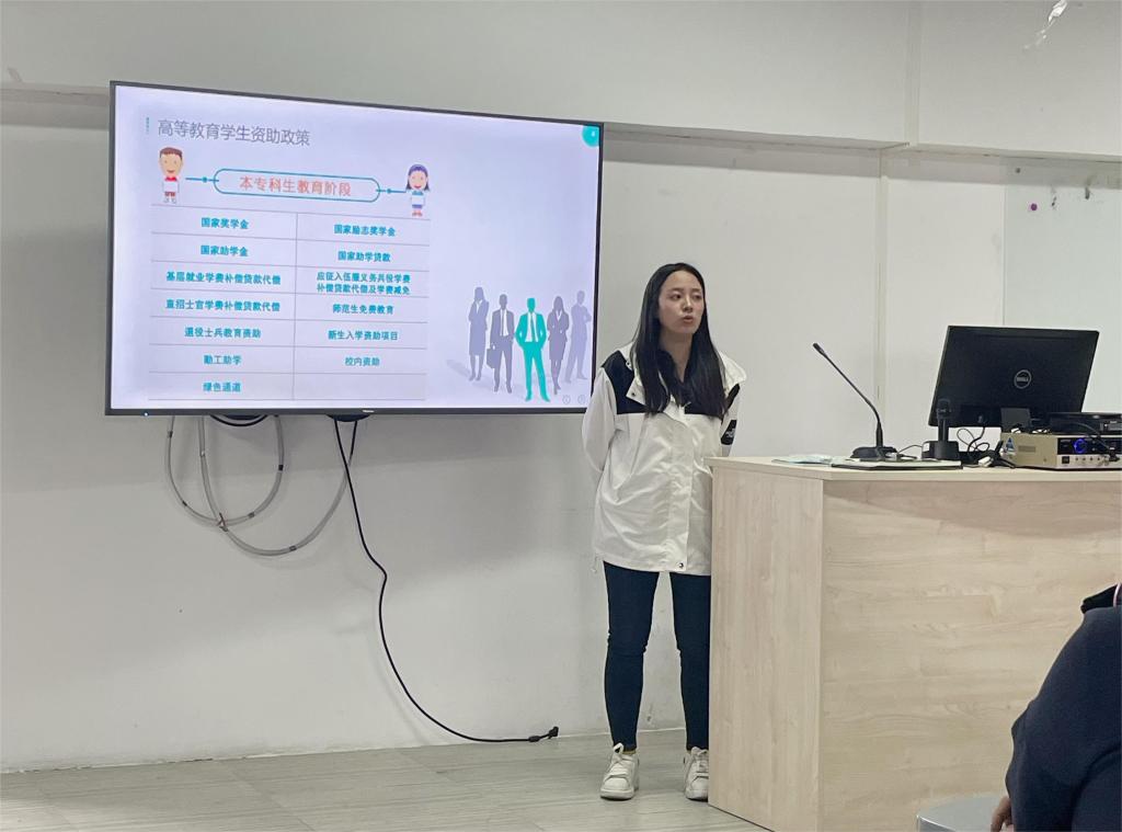 参加本次宣讲会的有学院学工办主任孙音老师、学工办主任副主任刘丹丹老师、资助经办人袁媛老师、2023-2024秋季学期美术学院家庭经济困难新生。