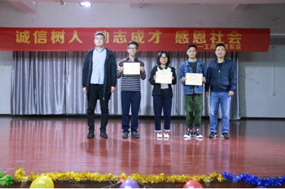 【本网讯】为了响应学院“德学五进”的号召,扎实展开德学教育,向帮助过和鼓励过自己的人表达最真挚的感恩之心,12月17日19时整,我系在学生活动中心五楼举办了“青春、励志、感恩”主题晚会。出席晚会的嘉宾有我系副主任赵春艳老师、学工组组长王伟江老师、团总支书记李翔老师以及系各级辅导员。赵春艳副主任、王伟江老师、周凌穹老师、杨婉君老师和卢剑锋老师担任本次文艺晚会的评委。