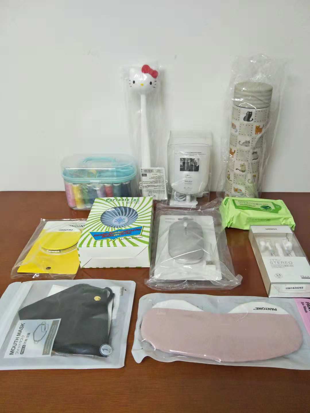 1.生活类:手提包、按摩器、针线包、三支装牙刷、清扬洗发水等