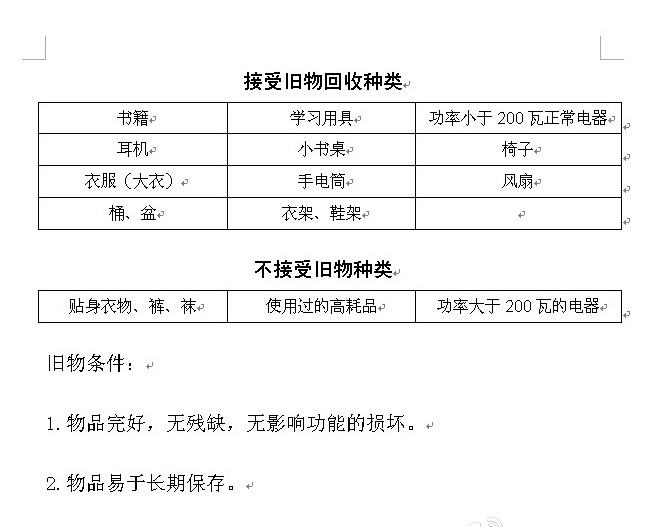 请广大师生做好物品准备,我们于 5月6日晚上7:00~10:00上各栋宿舍楼进行旧物回收(工作人员将穿一站式工作服或佩戴宿舍管理委员会工作证)。此期间若不在宿舍可在5月6、7号两天办公时间将旧物交到一站式服务中心1、2号窗口,届时将有工作人员进行回收登记。
