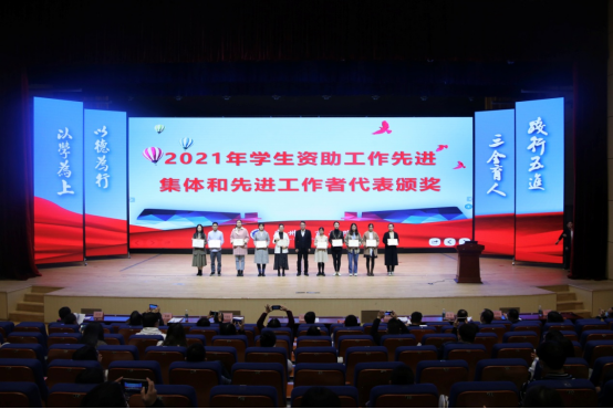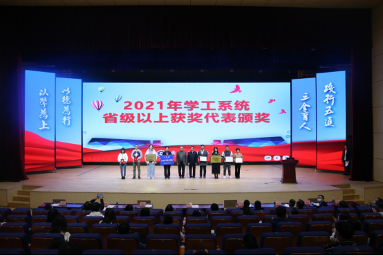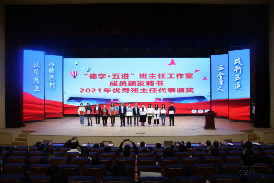 紧接着,由校长助理、学生处处长黄鹏宣读学工系统省级以上获奖、全校优秀班主任和学生资助工作先进集体和个人的表彰决定。校长邝邦洪、党委书记张振超、副校长朱特威、校长助理、学生处处长黄鹏、三水校区管委会主任兼学生处副处长徐达、学生处副处长孙洪波、学生处处长助理苏建贤分别对“2021年学工系统省级以上获奖集体及个人”、“2021年学生资助工作先进集体和先进工作者”、“2021年优秀班主任代表”进行表彰,为“德学·五进”工作室成员颁发聘书,以及为各二级学院心理辅导站进行授牌。
