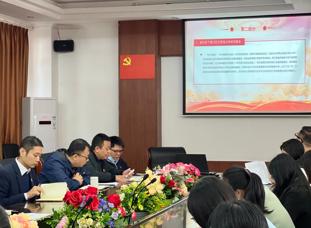 2022年12月16日上午,学生处党支部在办公楼101会议室召开专题学习会,本次学习专题为《深入学习领会习近平总书记关于维护意识形态安全的重要论述》,由学生处党支部组织委员晏芳林老师主讲,支部书记孙洪波主持,支部全体党员参加。