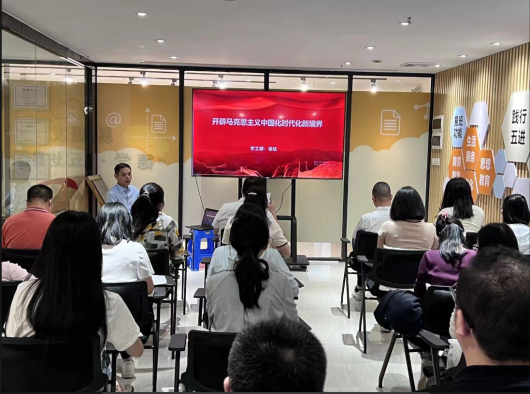 为深入学习宣传贯彻落实党的二十大精神,为学习贯彻习近平新时代中国特色社会主义思想主题教育,认真落实“学思想、强党性、重实践、建新功”总要求,加强党的基层组织建设,5月24日上午,学生处党支部举办主题教育读书班暨党支部理论学习中心组学习专题会,开辟马克思主义中国化时代化新境界。学工部部长徐达作领学报告,唐劲松同志作主题发言,学生处党支部全体党员参加,读书班由支部书记孙洪波主持。