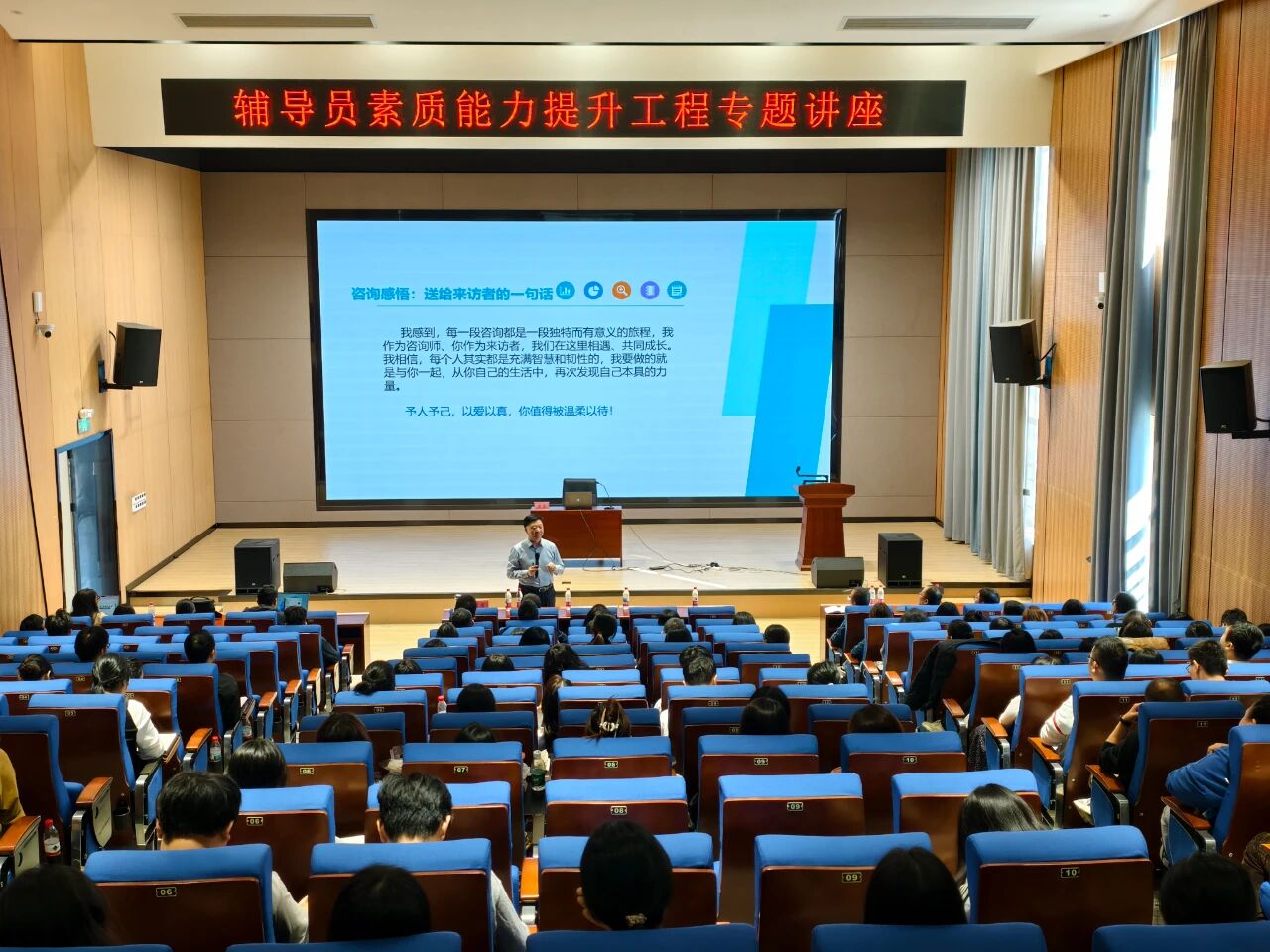 本次专题讲座作为学校辅导员素质能力提升工程的重要环节,是践行“德学”教育理念、深化“五进”教育实践的生动体现。学生处将持续推进辅导员队伍专业化、系统化建设,探索构建“课程+咨询+活动+大赛+服务”五位一体的生涯发展支持体系,全面提升育人实效。