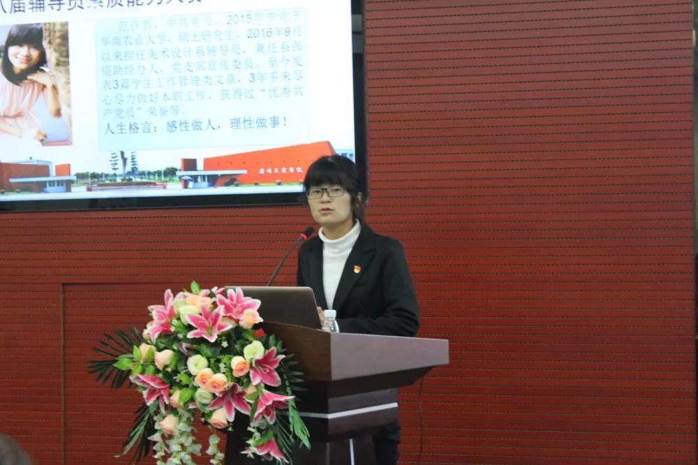 本次大赛共分为笔试和现场展示两个环节。笔试已于12月16日进行完毕,按笔试成绩高低从众多优秀选手中选拔出8名辅导员进入了此次决赛,他们分别是:工商管理系陈影老师、物流系张永训老师、经济贸易系白园园老师、外语系何玉花老师、电子信息工程系吴玉丽老师、美术系范许哲老师、公开学院金洁璐老师、计算机系宋珺老师