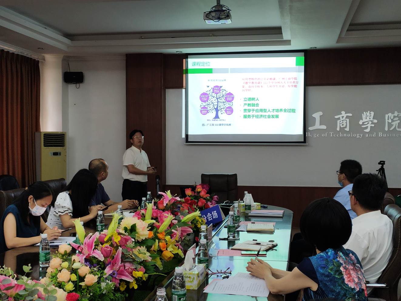 易班发展中心耿晓雯老师汇报了广东省网络文化工作室培育项目的建设现状、发展情况,并分享了项目未来发展的设想。学生处处长黄鹏对广东省教育教学改革项目《基于“五进”的应用型高校德学课程体系构建》进行了中期汇报。在汇报中,学生处处长黄鹏从课程定位、设计、实施、评价以及展望五个方面来介绍项目的开展情况,充分探讨以德为行、以学为上的教育思想,推行“五进”教育实践活动,培养学生六大核心能力。黄处长强调要加强教学队伍建设、课程师资的多部门协同以及校企教师合作,提升课程的专业度及系统化程度,提出课程未来要融合、混合现实等技术发展的展望。产业学院副院长任锦辉提出,产业学院是重视产教融合的平台,强调应用型大学应该培养学生的职业道德教育,使学生更好的适应社会。校企合作中心干事刘强老师提出,企业重视落地实施,可选择部分校企合作的基地进行德学教育,委派学校德学讲师到企业去讲授德学理念,以宣传德学思想。