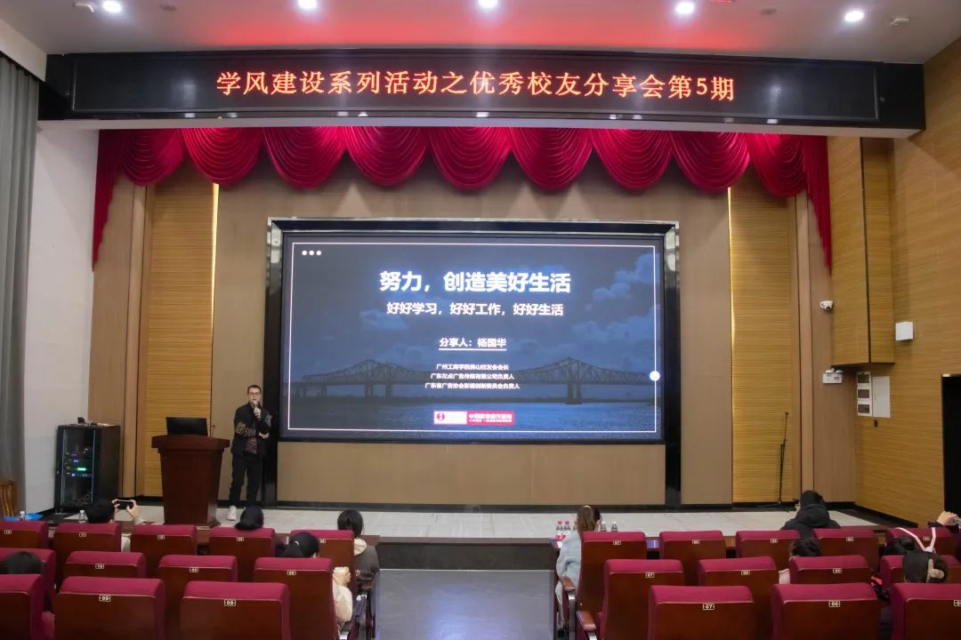 为进一步深化“德学”人才培养理念,塑造“勤学敏思,求实创新”的优良学风,充分发挥优秀校友的榜样引领作用,助力在校生树立学习目标、提升学习实效性。12月26日下午,学生工作部(处)联合校友会特邀beat3652007届优秀校友杨国华,在花都校区图书馆415报告厅举办了第5期优秀校友分享会。