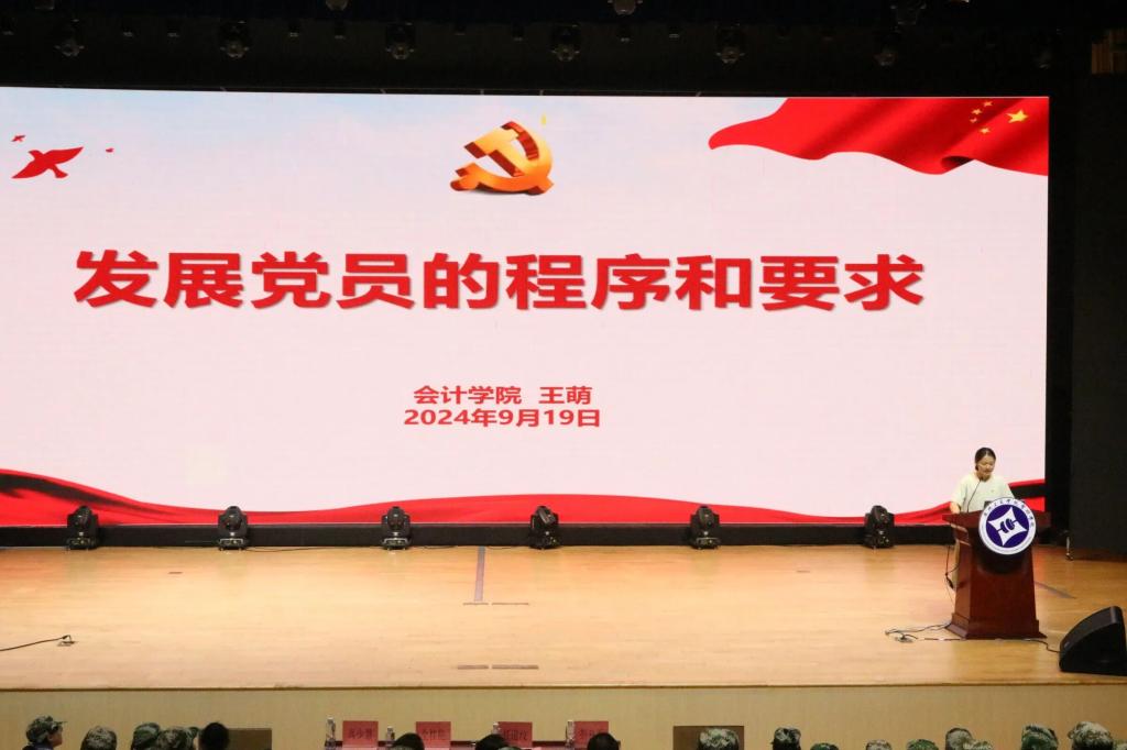 王萌老师进行党务知识培训,使新生了解入党的必要步骤,包括党员发展流程和党建活动等相关事项,旨在培养会计学子的政治意识,提升其理论素养。并鼓励新生们积极向党组织靠拢,把申请加入中国共产党作为大学期间追求的目标,促使自己在各方面变得更加优秀。心系祖国发展,服务身边同学。