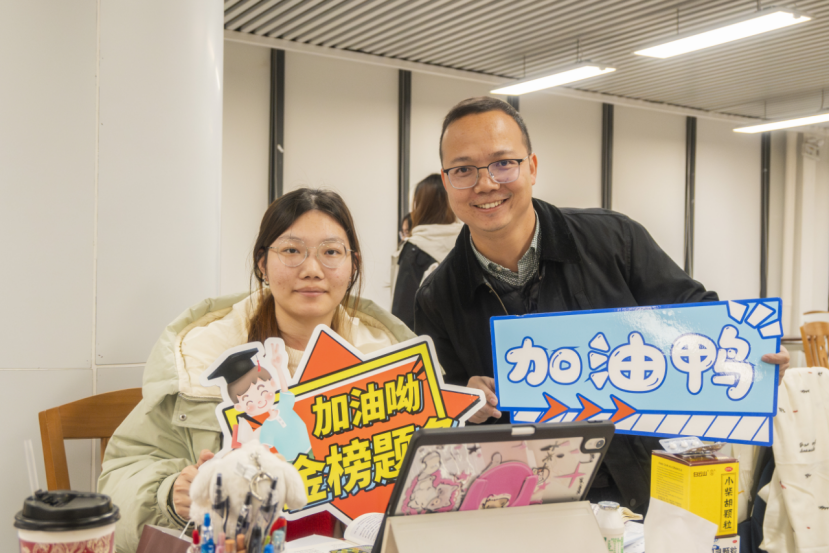 为持续深入推进优良学风建设,积极营造良好的学习氛围和育人环境,在2025年全国硕士研究生招生考试来临之际,学生工作部开展“一‘研’为定,温情护航”考研送温暖活动,通过深入“一站式”学生社区、图书馆考研自习室走访慰问考研学子等多样化形式,帮助学子缓解备考压力、坚定备考信心,激励考研学子以更加坚定的步伐迎接考试。