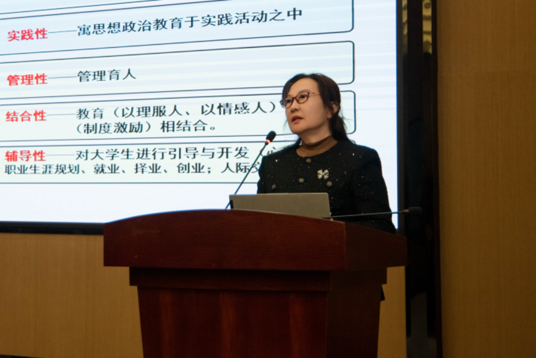 在最后的结营仪式中,由校党委副书记、副校长兼马克思主义学院院长张辉教授发表讲话,她指出,在两天的培训历程中,从心理咨询的理论探索到实践操作的精准把握,从就业指导的策略规划到实战演练的深入剖析,每一个环节都凝聚着大家的智慧与汗水。她还通过明确高校辅导员的角色定位与职责任务,强调本次培训的结业并非终点,而是新的起点,希望各位同仁能够以此次培训为契机,将所学所思所悟运用到实际工作中去,并提出三点要求:一要牢记筑牢思想政治根基,强化教书育人使命;二要坚守立德树人初心,不断创新工作方法;三要抓好学生社区建设,将思政育人做到“家”。