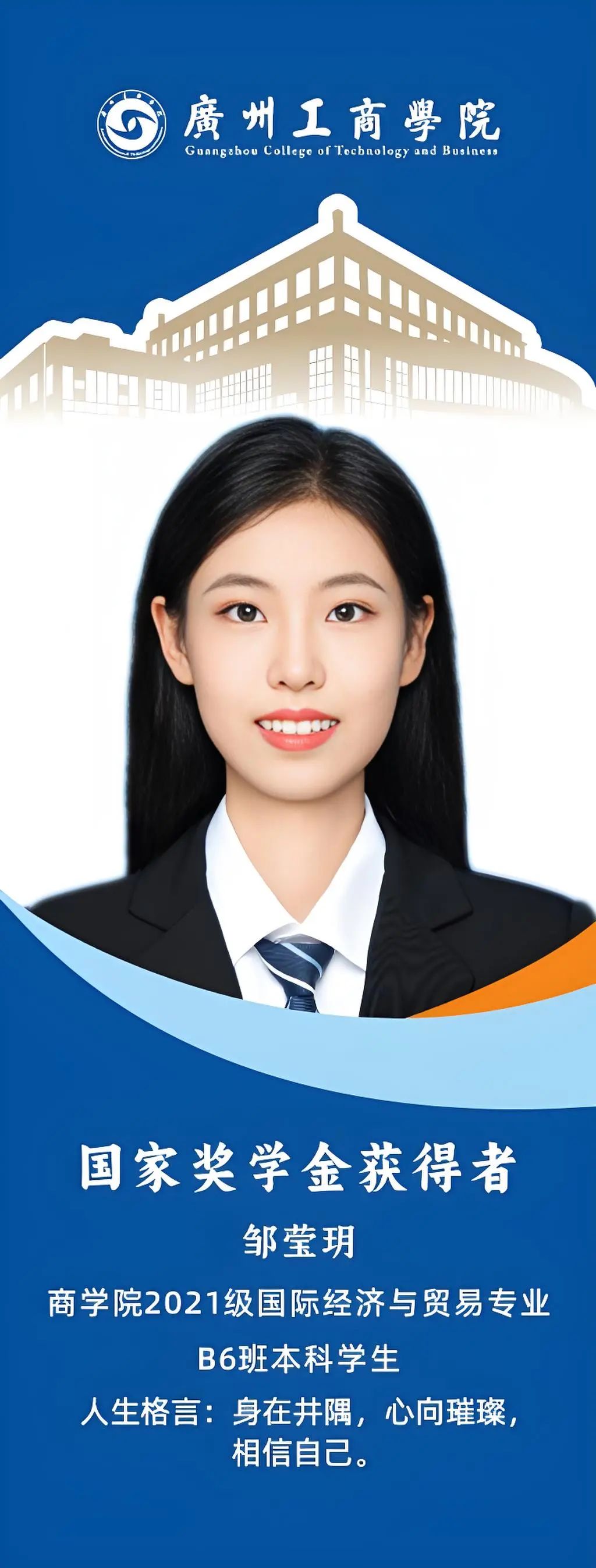 女,汉族,2003年9月出生,中共预备党员,外语学院2021级商务英语专业B1班学生。