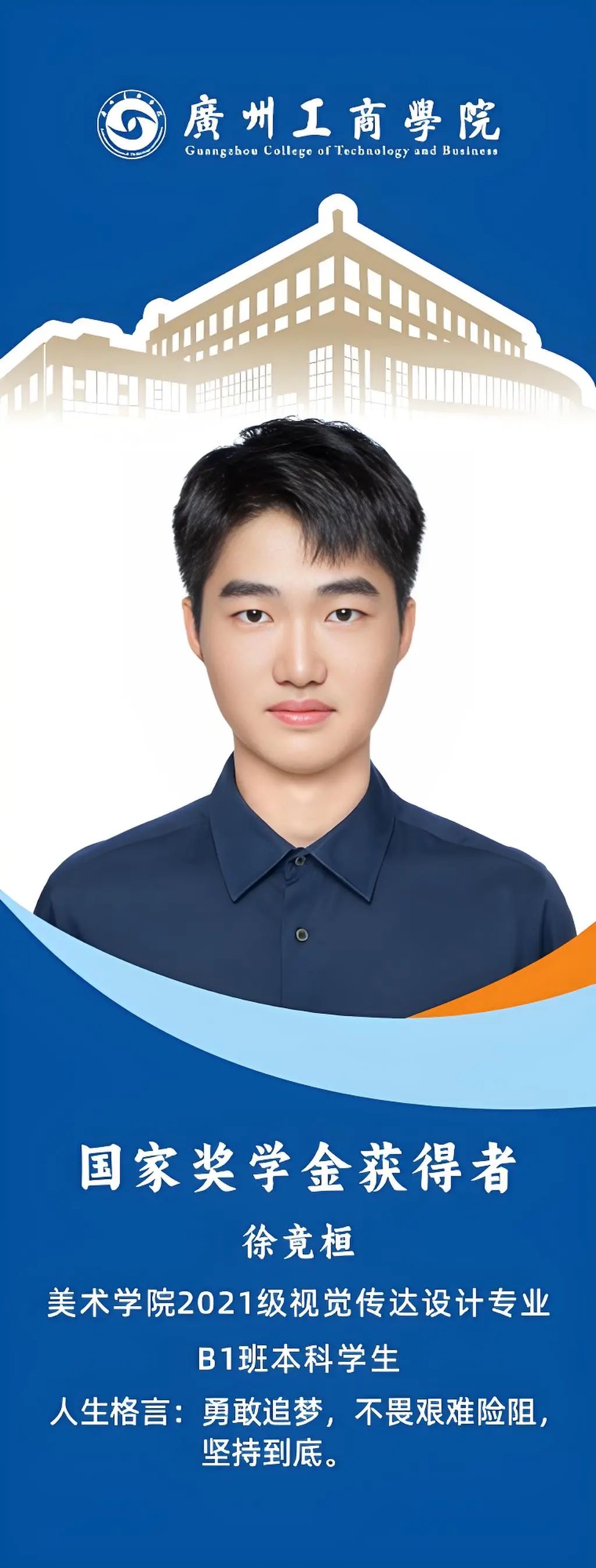 徐竟桓,在思想上,向优秀党员学习靠拢;表现突出,学习态度端正,学业成绩和综测成绩均在年级前列;在实践上,积极参与各项专业赛事,获得2023第15届全国大学生广告艺术大赛广东赛区二等奖,专业能力突出;在生活上,积极参与社会志愿活动;对待工作认真负责,在担任学习委员期间积极服务同学老师。