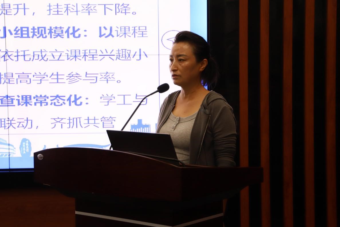 接着,学生工作部部长徐达对评估整改及无烟校园创建工作进行全面布置。他强调,一是各学院要从工作实际出发,继续优化完善学风建设整改方案,根据“三全育人”文件要求,以“德学·五进”为引领推进学风建设工作,确保方案的可执行性和可持续性;二是提高学生课堂到课率,联合相关职能部门做好学生课堂管理;三是各学院要依照专业特色,充分发挥教研室、专任教师、班主任的育人作用,凝聚育人合力,协同推进三全育人工作;四是通过引导学生积极践行“五进”教育实践活动、充分发挥班干部带头作用、围绕考研开展系列活动等,进一步带动学生“进图书馆”;五是“一站式”学生社区建设要对标教育部《高校“一站式”学生社区综合管理模式建设提质增效指南》各项指标要求,坚持以党建为引领,以学业指导、生涯规划和心理健康教育为主线,以行为习惯教育、安全教育为基石,逐步形成一社区一文化地标的校园文化生态新格局;六是细化落实无烟校园创建任务,通过开展创建无烟校园主题班会、课前五分钟演讲活动等措施,形成无烟校园常态机制。