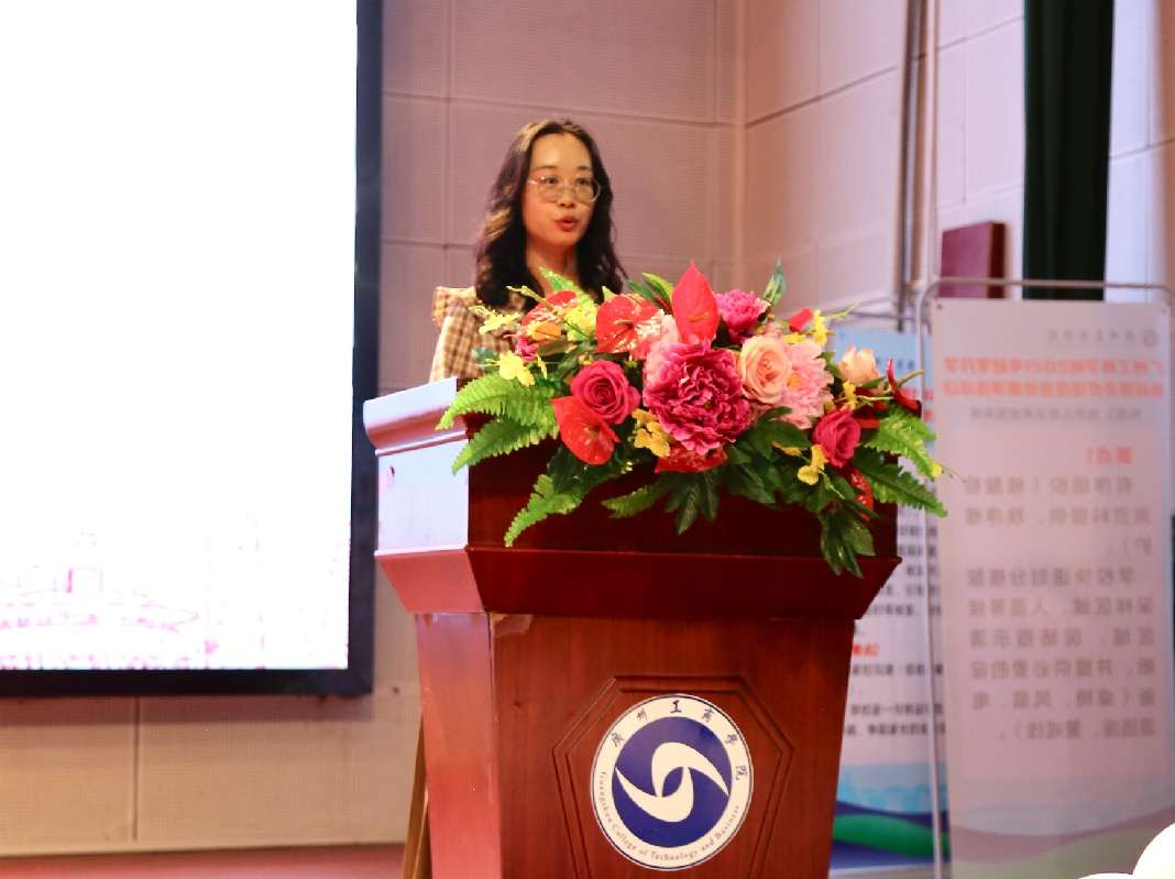 活动第四项,外语学院团委书记傅瑾老师发言。傅瑾老师向在场人员介绍2021年外语学院外语文化节的相关内容:一、介绍其发展历程,外语学院一直秉承传统、创新精神,以“徳学教育思想助力大学生实现人生理想,以“五进”教学实践理念强化外语学院特色,开拓学生视野、提高学生学习外语的兴趣。二、介绍2021年外语文化节主题内容。在中国共产党建立一百周年的背景下,外语学院团委学生会在校领导、专业老师的悉心指导下,精心策划了一系列丰富多彩的活动,外语学院开展外语文化节致力为广大学子搭建平台,丰富学生外语学习方式、增进学生对外语的热爱、增加学生外语运用能力和表达能力持续努力着。三、表达美好祝愿。傅瑾老师表示外语学院将会在今后的校园品牌建设中不断扩展以专业讲座、专业竞赛,及外语角为主体的第二课堂教育平台和以爱国教育为主体的德学建设平台这两大平台活动内容,让学生可以真正做到学以致用,所学得以最大程度的展示。最后,傅瑾老师期望所有学子可以积极参与其中,并给予学生学业与生活的美好祝愿。