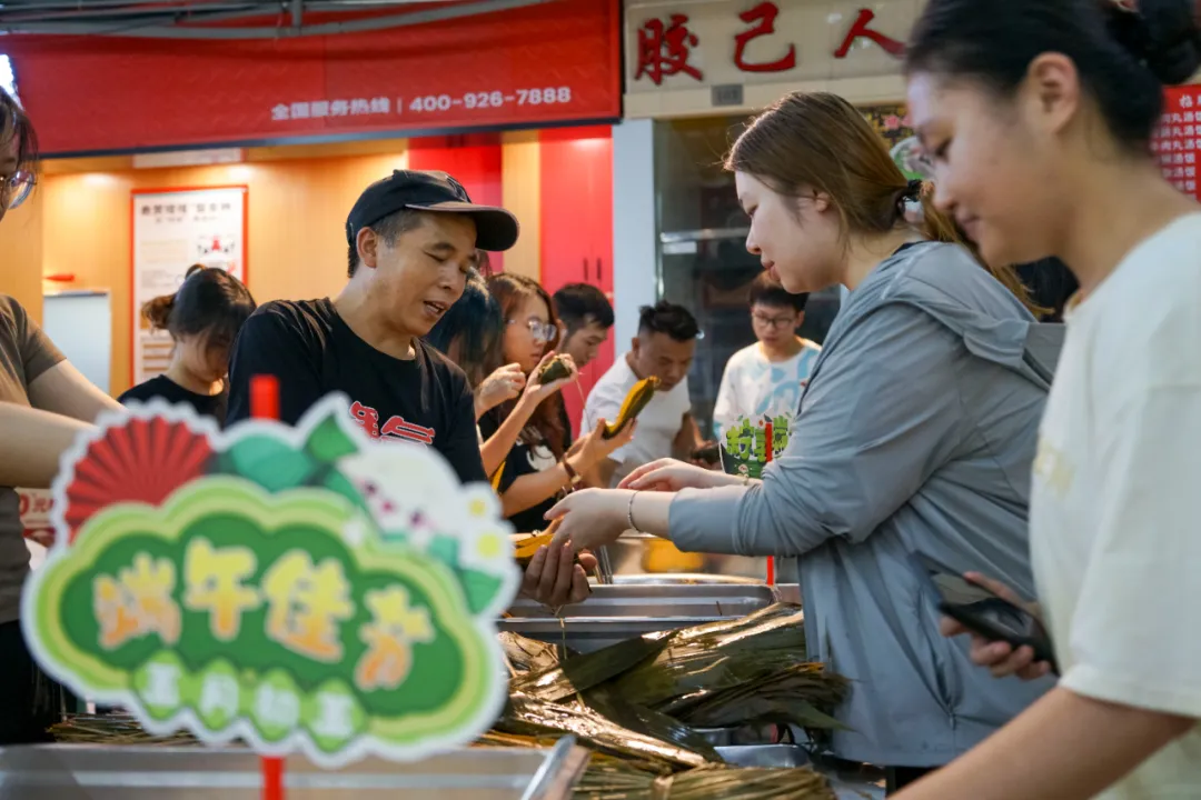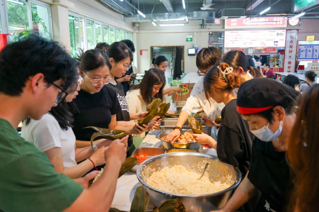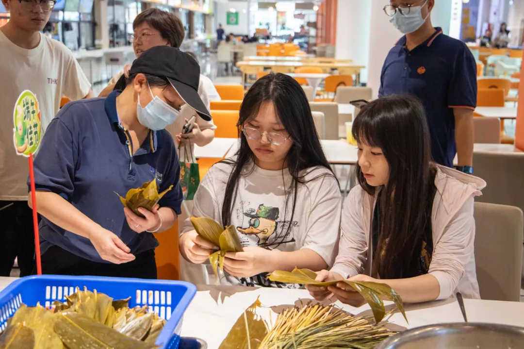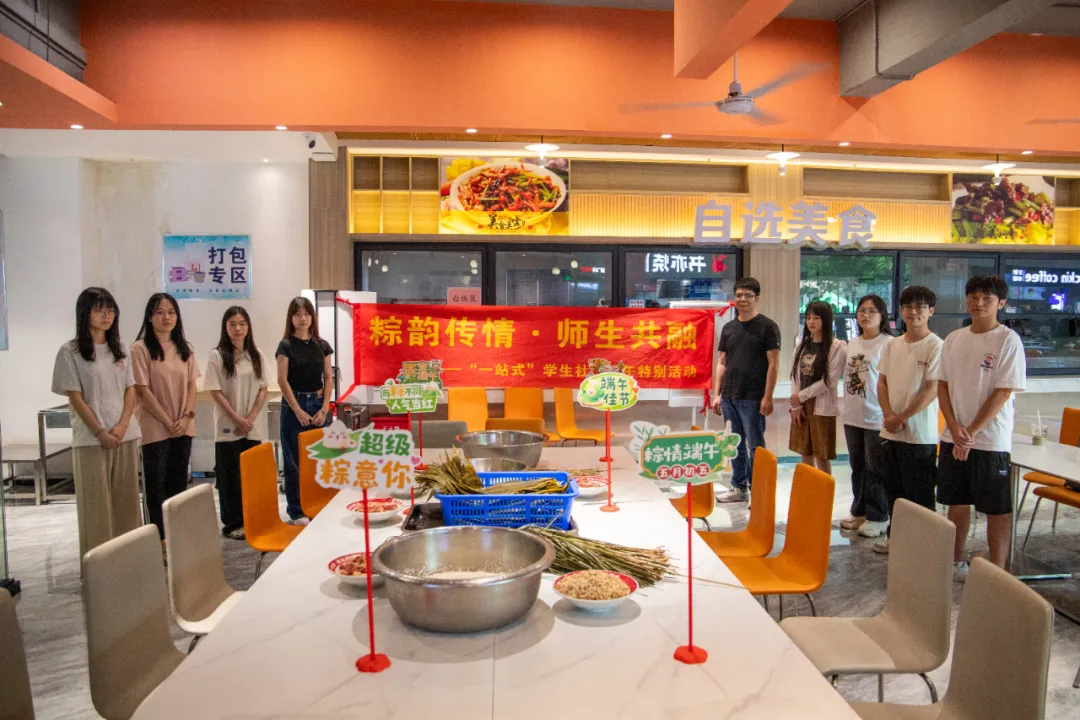 为进一步传承和弘扬中华优秀传统文化,深入挖掘传统节日文化内涵,增强师生间的情感交流,同时表达对学校工勤人员的深深感激,5月30日,学生工作部联合三水校区第一食堂、花都校区第一食堂举办“一站式”学生社区端午特别活动。学生工作部相关负责老师、学生工作部学生融媒体中心和宿舍管理委员会学生代表、食堂工作人员共同参加此次活动。