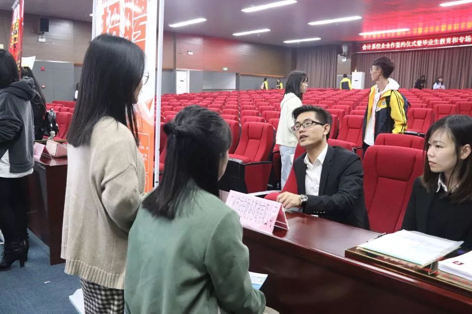 合作与发展,始终是时代前进的主题。12月7日下午两点,由会计系主办、校企合作中心协办的会计系校企合作签约仪式暨毕业生教育和专场招聘宣讲会在我院学生活动中心六楼举行。出席本次会议的领导与嘉宾分别有:我院副院长易露霞教授,广州誉源财务咨询有限公司总经理程谨源先生,广州聚恩财税咨询有限公司总经理杜晓峰先生,广州穗安财务咨询有限公司总经理王连广先生,广州祥佳财务咨询有限公司总经理汪松林先生,广州恒脉企业管理有限公司总经理黎荣毅先生,广州万顺财务有限公司总经理曾凡主先生,广州致圣财税代理有限公司联合创始人蒋雁先生,广东金账本会计咨询服务有限公司增值部总监赵远亮先生,广州优业财务咨询有限公司佛山分公司总经理刘雄先生,广州鸿顺财务咨询有限公司总经理黄有吟先生,广州蓝翔财务咨询有限公司总经理徐雅翔先生,广州四柱清财务咨询有限公司办公室主任许兆麟先生,我院三水校区管委会何国林主任,科研处处长、校企合作中心主任陈小康教授,会计系主任程燕教授,就业指导中心鲁江旭副主任,校企合作中心林启德副主任,会计系全桂艳副主任。
