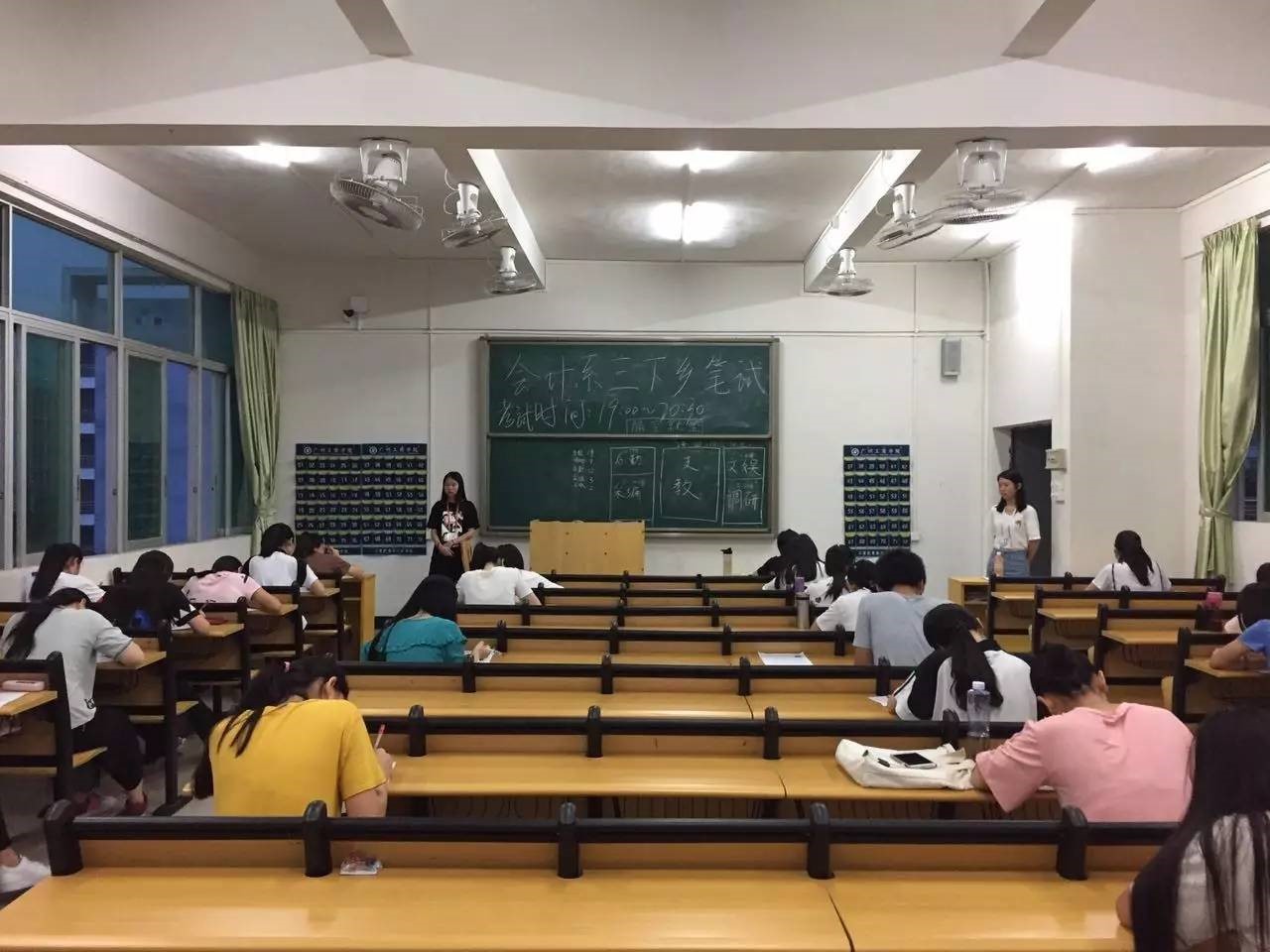 为了提高会计系学子参加暑期社会实践活动的积极性,不断提升自身素养,增强理论与实际相结合的能力,2017年5月11日星期四晚上,由会计系缘梦公益团队举办的暑期“三下乡”活动的笔试在第二教学楼B301~B303课室举行。