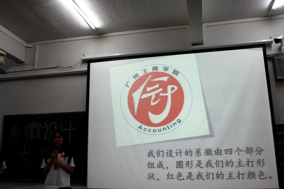 选手们依次上场,以精心制作的ppt作品以及精辟洗练的解说令我们对其作品有了深入的了解。她们首先向我们展示了参赛作品,接着她们分别从作品的组成部分、色彩、创造灵感上给出了自己的寓意。有的寓意着会计的理论知识;有的寓意着我院会计专业学子们奋发向上的积极心态,它们涉及的元素有算盘、账本、铜钱等,从各角度体现了“会计”这一主题。