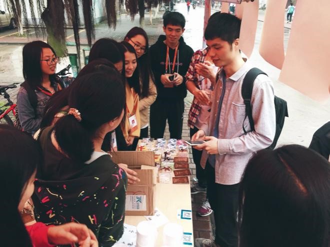 下午四时许,活动正式开始。伴随着绵绵春雨,缘梦团队的成员们早早布置好现场,摆放好精美礼品。有可爱的杯子、温馨的多肉植物、迷你香皂、精美的金属书签等等。同学们经过的时候,忍不住停下脚步看看,不一会儿,现场便聚满了人。同学们满怀热情地奉献出自己的一份爱心。通过爱心义卖小礼品,同学们互相传递彼此的温暖,弘扬了雷锋助人为乐的精神。