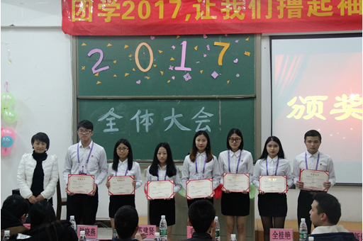随后,大会进入颁奖仪式,由主持人宣布“优秀部员奖”、“ 优秀组长奖”、“ 优秀部长奖”以及“优秀部门奖”,由获奖代表上台领奖。期间,由文娱部带来一曲《夜空中最亮的星》之后,全主任上台作总结发言。她就“如何做好一名学生干部”提出四个方面的交流意见:第一,要提升一种思想高度,在思想上要先进;第二,要养成良好的习惯,即自我反省、培养文明礼貌、做好表率作用的习惯;第三,要培养三种意识,分别是责任意识、团队意识以及服务意识;第四,要提高四种能力,分别是为人处事能力、人际交往能力、组织策划能力以及团队协作能力。这需要我们学会倾听、提高赏识能力、提高沟通能力,在工作中,我们也要相互配合。最后,全老师祝贺会计系团学取得的优秀成绩,希望在团总支的领导下,学生组织可以蓬勃发展。至此,本次大会完美落幕。