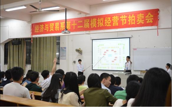 2015年4月15日晚,由经济与贸易系团总支学生会主办的“第十二届模拟经营节摊位拍卖会”在计算机楼103教室隆重拉开序幕。经济与贸易系团总支书记蒋亚敏老师出席了此次拍卖会。