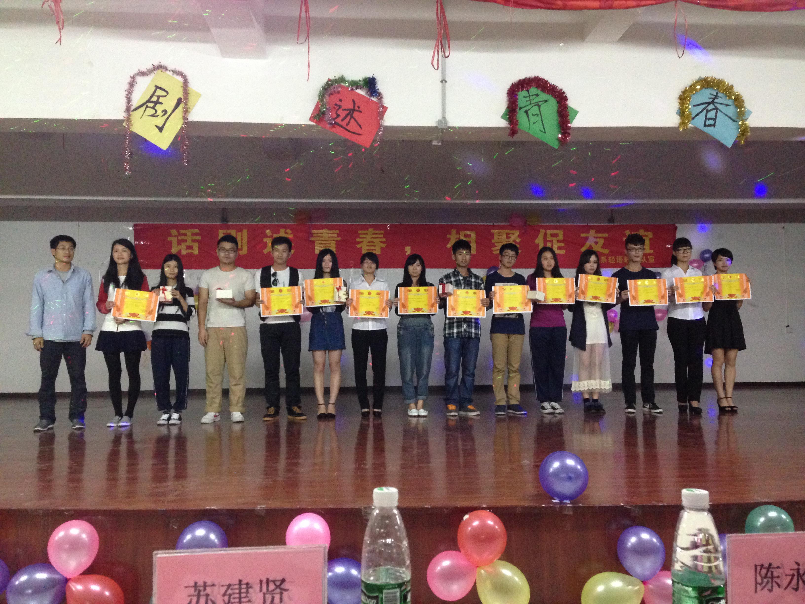 2014年5月9号晚上7时,财金系二级心理辅导站“轻语轩”团队在三水校区活动中心举行了“剧述青春”的班级联谊晚会活动。学院团委陈永锋副书记、系学工组副组长苏建贤、系学生会指导老师熊玉琴以及邢燕妮、黄国威、黄雯等辅导员代表出席了活动。活动在财金系二级心理辅导站站长、“轻语轩”团队指导老师吴飞的组织下顺利展开。