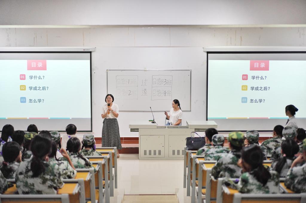 至此,新生入学教育大会圆满结束,进入专业介绍会环节。19:50,商务英语专业介绍会于体育馆举行、日语专业介绍会于教学楼417举行。商务英语专业包力方老师、日语教研室林晓卿老师和余慕英老师分别作为商务英语专业介绍会、日语专业介绍会主讲人向2020级新生介绍了外语系的发展情况、师资力量、专业设置情况、学生考研深造情况、就业前景等等,老师们希望新生们在四年的学习生涯中提升自我,收获知识,实现人生理想。