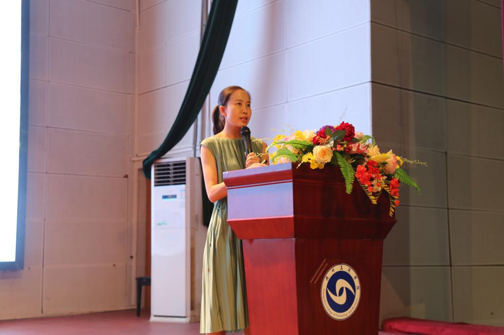 紧接着由外语系优秀教师代表石晓彤老师发言。石老师欢迎同学们加入beat365在线体育官网登录入口外语系这个大家庭,希望同学们牢记,正德厚生,励志修能的校训。在大学生活中能做到以下几点:勇于担当,勇于挑战,追逐青春梦想,展现青年担当;敢于选择,把握机会,机会总是掌握在有准备的人手中;珍惜时间,以梦为马,不负韶华。最后石老师衷心祝愿同学们学业进步。