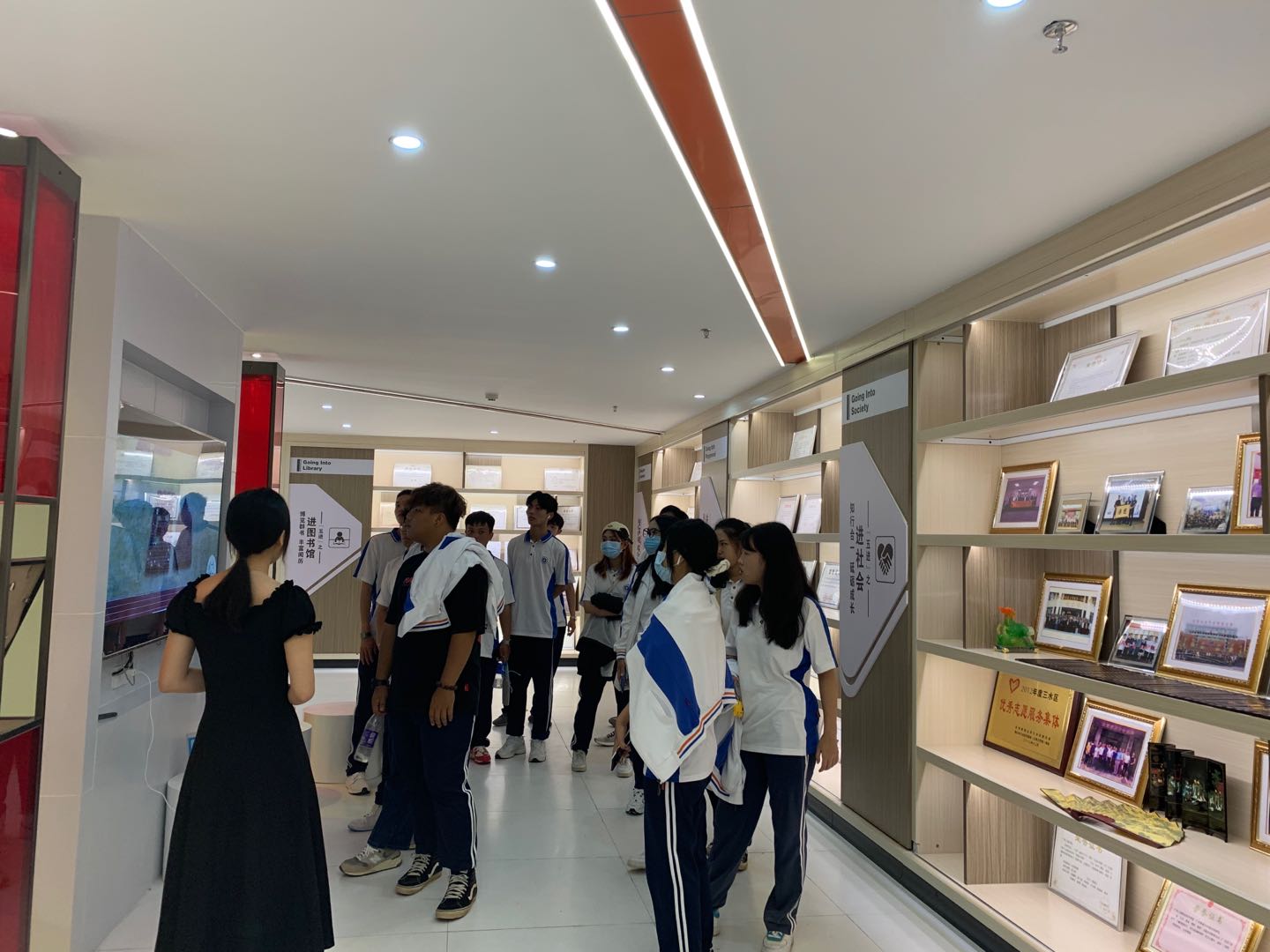 最后同学们来到了三楼德学成果展厅,党中央将立德树人作为教育的根本任务。看到了beat365的各种成就和荣誉,知道了五进的具体内容,看到了五进吉祥物,更加形象的提现了我院的校园文化。