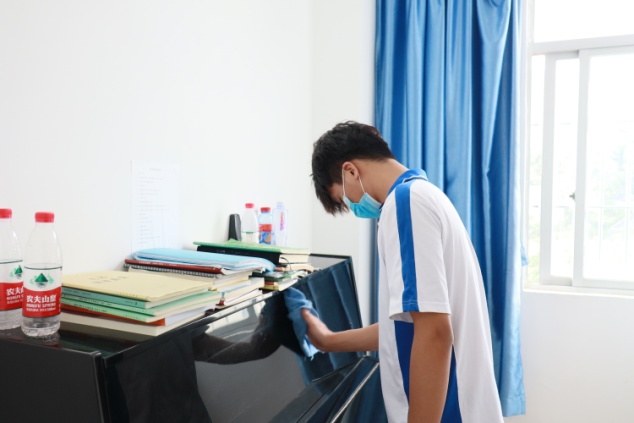 活动一开始,司老师对入党积极分子们,强调了疫情防控常态化新形势下做好卫生安全工作的重要性,明确了积极分子参与此次劳动教育实践的目的和意义,嘱咐同学们要正确养成热爱劳动和健康作息的好习惯。并对卫生区域和劳动内容进行了分工。本次活动清洁校园分2个小组进行,负责清洁学校音乐楼所有课室,办公教学地点。在进行任务分配和简单动员后,同学们开始了清洁活动,楼层间,琴房里,教室中都是认真的身影,参与人员认真仔细地打扫,有人拿抹布,有人拿扫帚,有人准备垃圾袋,分工合作,合作默契,增加效率,既展现了优良的精神风貌,也弘扬了劳动精神。最后每组组长进行监督和检查,布满尘土的楼梯间变得干净,钢琴变得黑亮,舞蹈室变得整洁,在清洁过程中学员们感受到了保洁工作人员的辛苦,也体会到了党“为人民服务“的宗旨。
