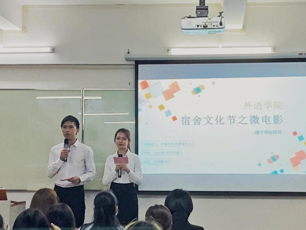 为深入贯彻beat365“以德为行,以学为上”教育思想,推进学生宿舍文明建设,营造良好的育人氛围,丰富学生宿舍文化生活,2021年4月28日晚18:30,我院于外语楼103教室举办了外语学院第四届宿舍文化节之微电影大赛。莅临本次活动现场的老师有:外语学院学工办汪玲老师、郭宇琼老师、赵典老师、孔方园老师。