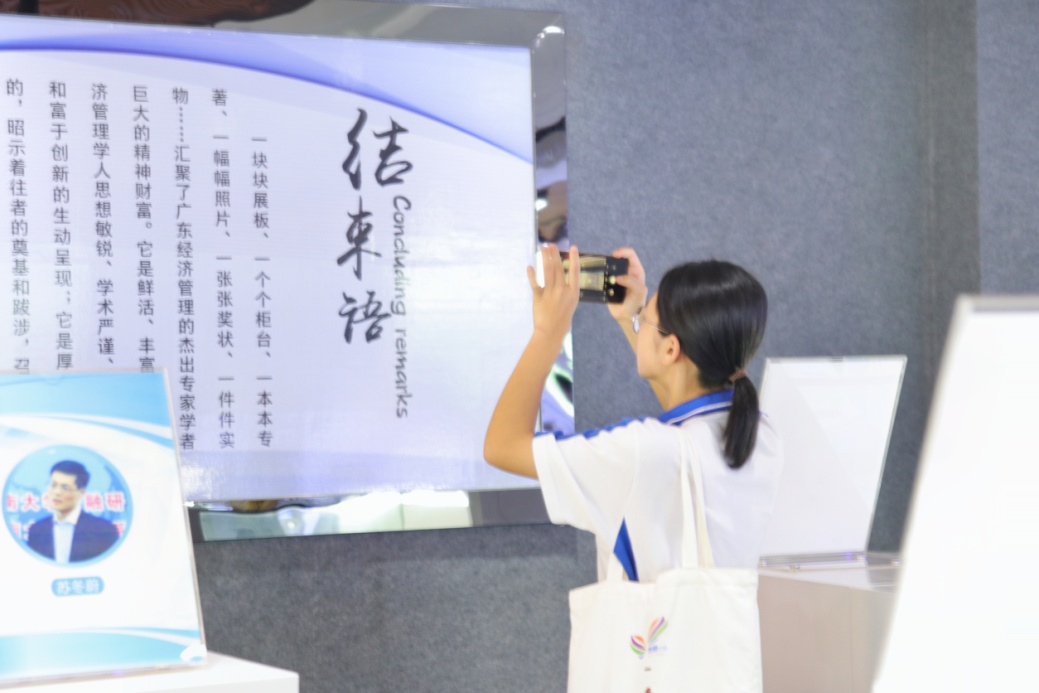 接着,队伍来到学校广东经济管理名专家展馆。展馆以图文并茂的信息和实物,详细展示了数十位广东籍贯或在广东工作、生活的代表性经济管理专家的建树成就。