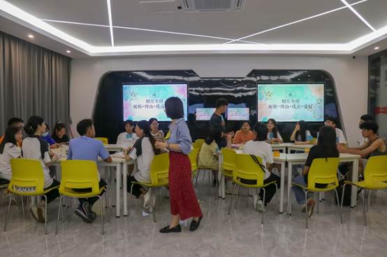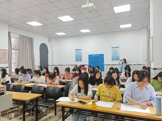 活动第一项是一个热身活动“捉蜻蜓”。所有同学在课室里围在一起,大家在老师的指导下举起自己的左手掌和右手食指分别放在左边同学的食指上和右边同学的手掌下,老师开始念一段故事,要求同学们在听到关键词的时候就要抓住左边同学的蜻蜓,同时也要避免被右边同学的蜻蜓抓住,被“捉”住次数最多的同学要回答老师的问题。整个活动既快速缩进了同学之间的距离,又消除了大家的疲惫感,一时间,活动现场便充满了大家的欢声笑语。