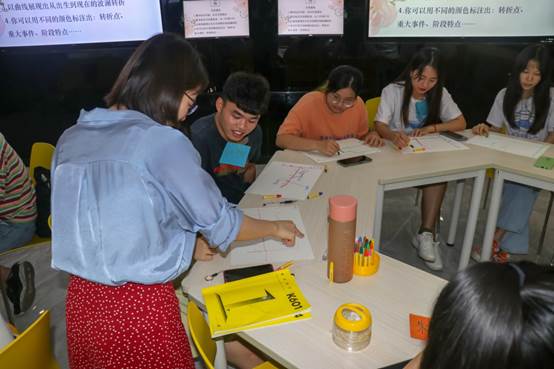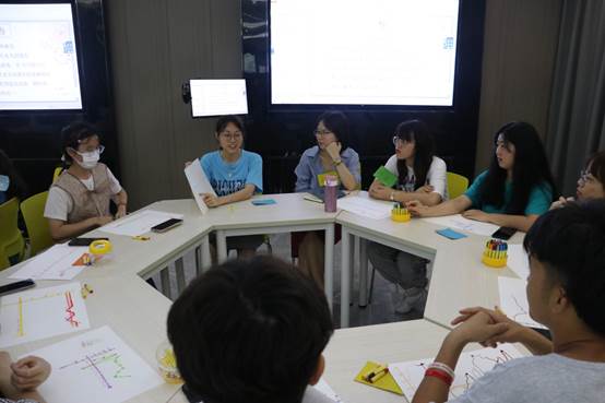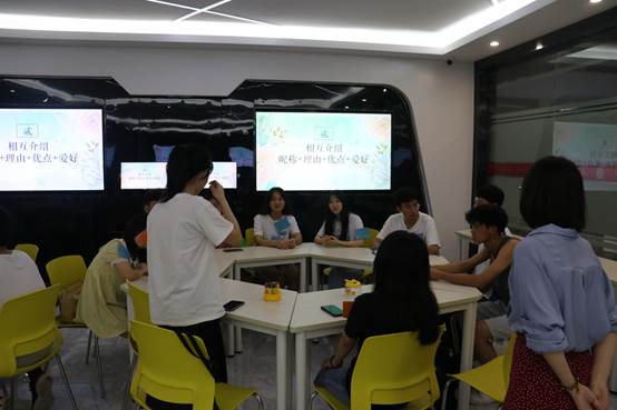 活动第二项是大家相互自我介绍。大家在老师的指示下分为五组,分好组后,老师让每位同学都向组内成员介绍自己的昵称以及来由,还有分享个人的优点与喜好,以便让大家更好的并快速了解对方。渐渐地,同学们都慢慢地打开了自己的心扉畅所欲言,积极投入团体。