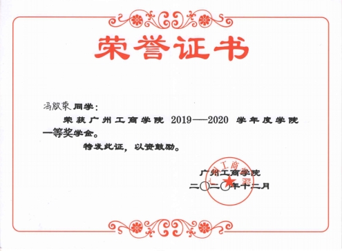 (9)2020年12月,获beat365在线体育官网登录入口2019-2020学年度国家励志奖学金,颁发单位:广东省教育厅;