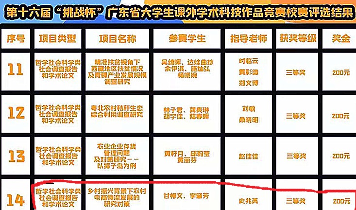 7)2021年3月,获第十六届“挑战杯”广东省大学生课外学术科技作品竞赛校内赛三等奖。