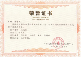 (3) 2020年12月,获广东高校网络思想政治工作中心“易”起为祖国庆生微视频征集大赛三等奖;