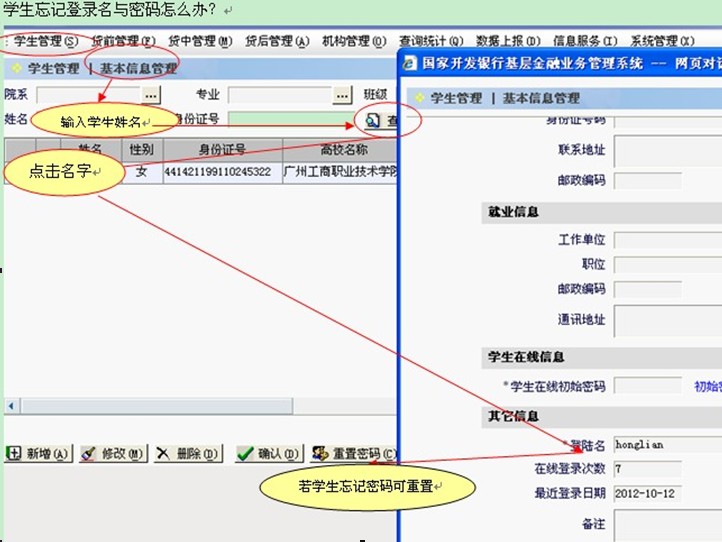 学生忘记助学贷款在线服务系统的登陆名与密码院系如何操作?