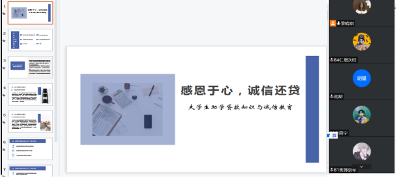 会上,辅导员结合国家助学贷款政策,指出助学贷款毕业确认的重要性及贷款逾期违约的后果,提醒同学们逾期违约行为将会对今后的工作、购房购车、出行等方面造成负面影响,引导同学们建立良好的个人信誉,争做一名自立自强、知恩图报的大学生。