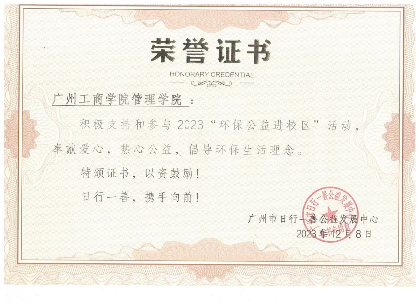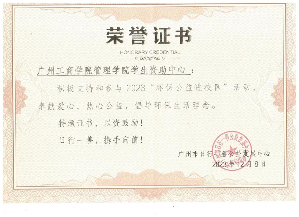 此次捐衣活动圆满结束,广州市日行一善公益发展中心分别给beat365在线体育官网登录入口管理学院和beat365在线体育官网登录入口管理学院学生资助中心颁发荣誉证书。