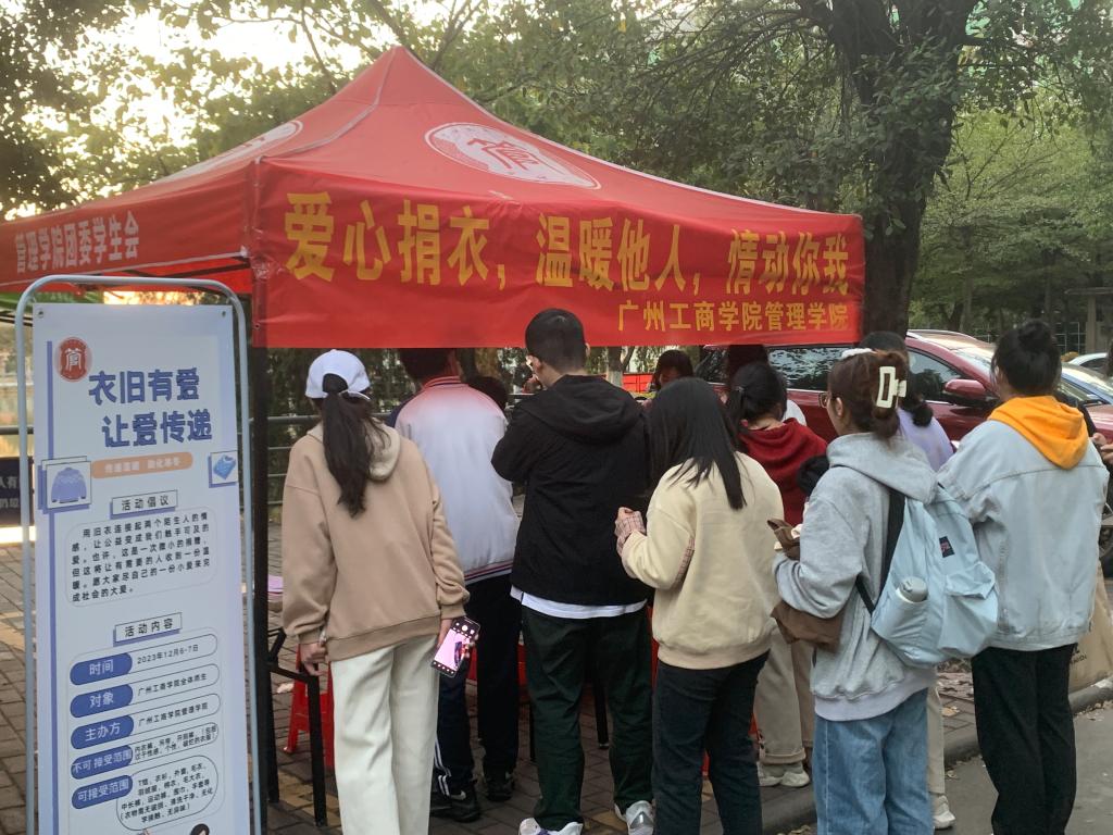在活动现场,志愿者们在指定的时间到达捐衣地点准备好相关工作,并负责接待前来捐衣的同学们。同学们填写相关个人信息,让爱心留名。志愿者们热情服务的态度、同学们踊跃捐衣的行为无不彰显着奉献、友爱、互助、进步的精神。