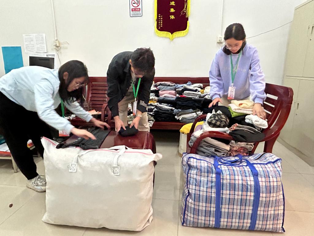 活动结束后,志愿者们热情洋溢,始终坚守在各自的岗位上,积极对捐来的衣物进行筛选、分类、整理,将同学们捐赠的衣物进行打包,沉甸甸的编织袋里满是同学们的爱意。