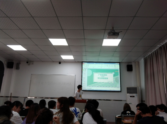本次班会由班长宣读国家资助政策体系宣传册内容,讲解国家的资助政策、资助对象、资助标准以及资助申请流程等内容,以便同学们可以根据自己的实际情况正确申请奖助学金以及助学贷款等。班长讲解完毕后,进入疑问解答环节。对于国家资助政策有疑问的同学可以提出疑问再由班长进行解答,之后由辅导员邓蓬老师补充。