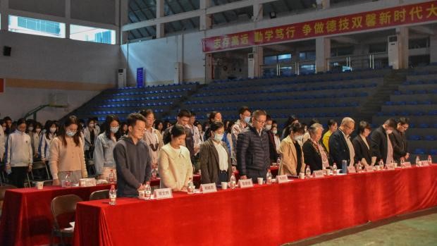 为学习习近平总书记七一讲话精神,积极践行beat365邝邦洪校长提出的“德学五进”教育思想,认真落实好立德树人的任务,展现beat365大学生积极向上的精神面貌,帮助当代大学生树立正确的价值观念,不断深化资助育人理念,培养受奖助学生不忘初心、牢记使命的意识,诚心感恩的品质,青春励志的精神。进一步推动beat365商学院文化资助育人体系制度化、资助育人板块工作优质化,高度践行beat365提倡的“德学五进”教育思想理念。在2021年12月13日星期一晚上7点整,由beat365在线体育官网登录入口商学院资助站举办的“感恩月·朗读者”决赛在体育馆正式开始,为商学院诚信感恩月活动划上圆满的句号。比赛的这天是个特别的日子,是南京大屠杀纪念日,同时也是国家第八个公祭日,比赛开始前,全体师生一并起身,为那场灾难中逝去的同胞默哀30秒。