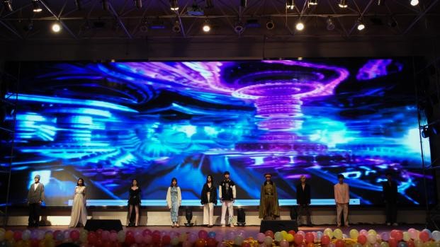 在第一轮比赛结束后,工作人员收集评分表统分期间,由继教院歌舞社模特组为大家带来走秀《tonight》以及商学院团学文娱部为大家带来歌曲《小欢喜》、《仰望星空》。