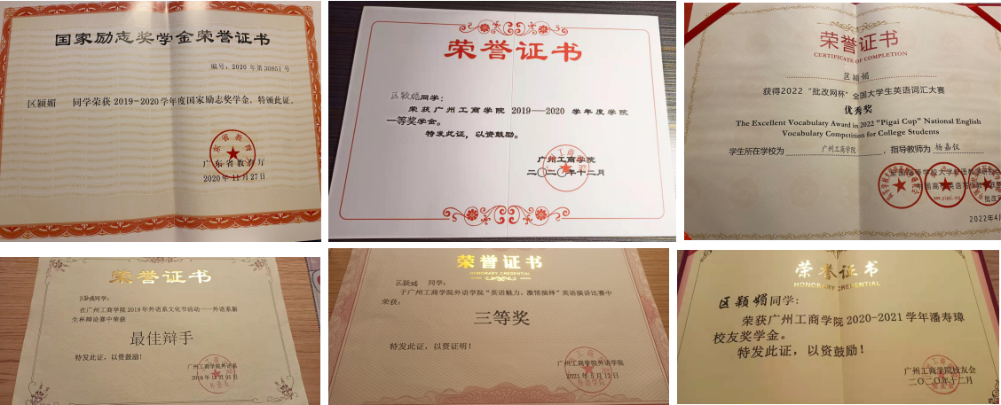 2022年4月获得2022“批改网杯”全国大学生英语词汇大赛优秀奖;